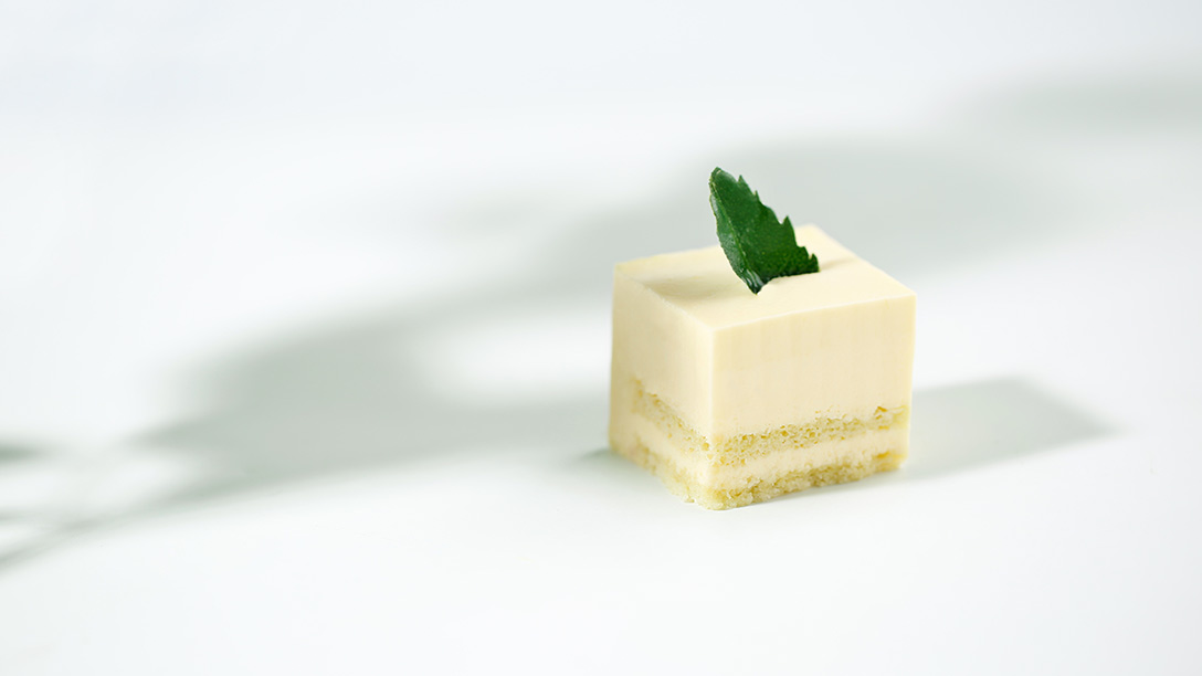 薄荷、青柠叶、青柠、姜,巧妙的比例与精准的计算,结合慕斯绵密细致的口感,